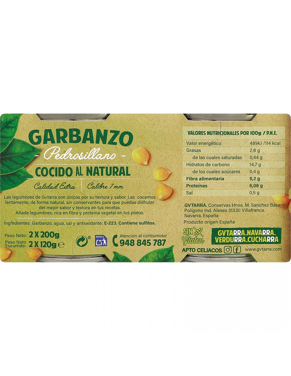 GARBANZO PEDROSILLANO COCIDOS AL NATURA. PACK 2X120G GVTARRA (6U)